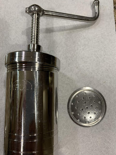 - Add dough inside murukku maker and spin. This is the hard part:)